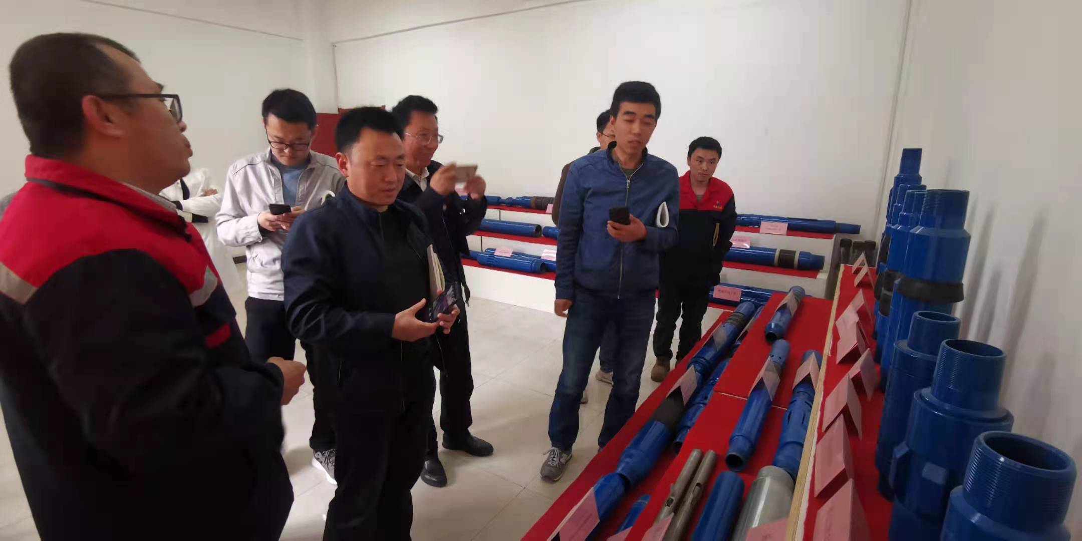 交流會后,中煤科工西安研究院一行人員參觀了東昊公司產(chǎn)品展示廳,公司技術(shù)總工程師苗長山博士就工具性能,應(yīng)用場景一一作出了介紹。在生產(chǎn)車間和產(chǎn)品庫房,西安研究院一行人員了解公司生產(chǎn)狀況和技術(shù)產(chǎn)品,對公司的生產(chǎn)能力和研發(fā)能力表示贊賞。